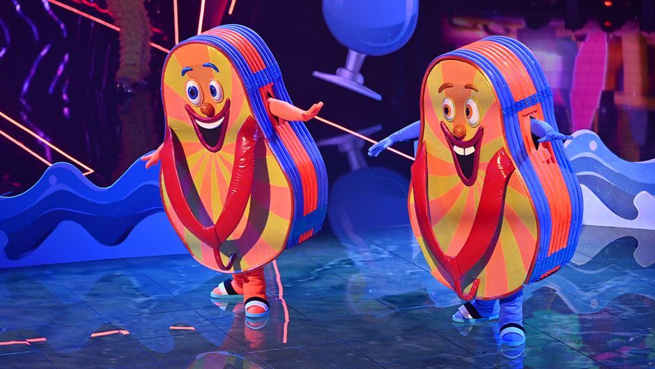 Der Flip Flop überrascht mit seinem Auftritt in Sendung drei, denn plötzlich stehen zwei Flip Flops auf der Bühne und sorgen mit "Club Tropicana" von Wham! für gute Stimmung im "The Masked Singer"-Studio. Das Rateteam kann es kaum glauben.